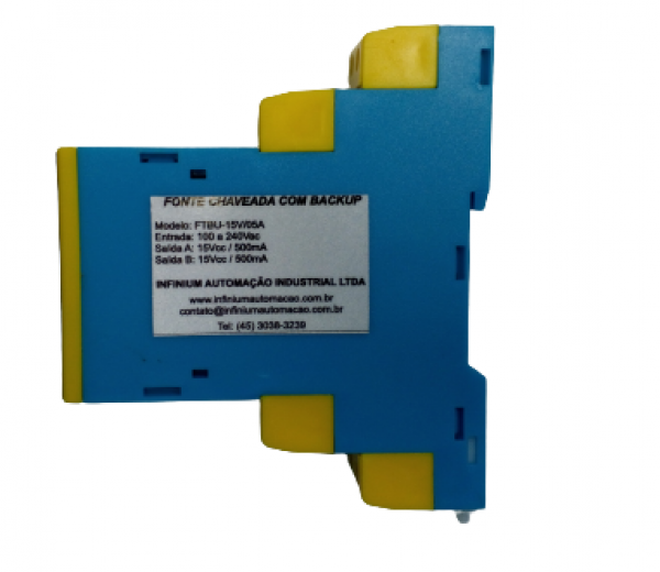 Fonte de Alimentação Chaveada com dupla entrada e dupla saída independentes, fixação em trilho DIN. Aplicações em painéis elétricos industriais e máquinas dos mais variados tipos, alimentação de Telecomandos, Rádio Modem e CLP´s com a possibilidade de backup em caso de queima da fonte principal.