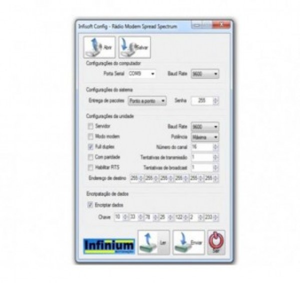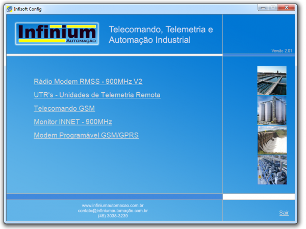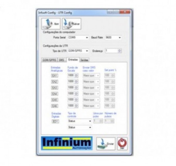- Comunica diretamente com os equipamentos Infinium através de comunicação RS232 ou USB. - Permite programar o tipo de controle das UTR's, endereços, setpoint's, parâmetros, etc.